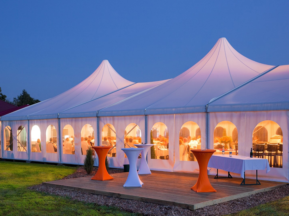 Kleinzelte sind Zelte, mit einer Spannweite von 4 bis 15 Metern und einer Standard-Seitenhöhe von 2,3m. In Ausnahmefällen sind auch 2,8m Seitenhöhe (Traufhöhe) möglich. Sie eigenen sich hervorragend für Veranstaltungen von ca. 25 bis 500 Personen. Höchste Materialqualität und ein durchdachtes Baukastensystem machen es möglich, sich nahezu jedem Bedarf / Anspruch anzupassen. Zuletzt spricht ein ideales Preis-/Leistungsverhältnis für die Auswahl unserer Kleinzeltsysteme.