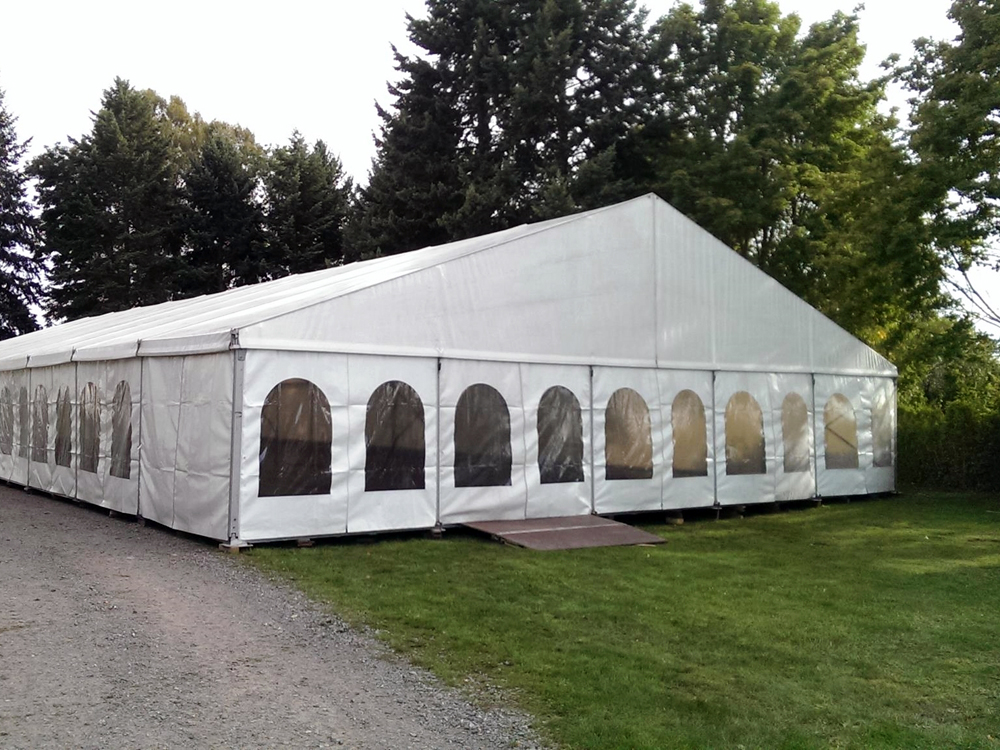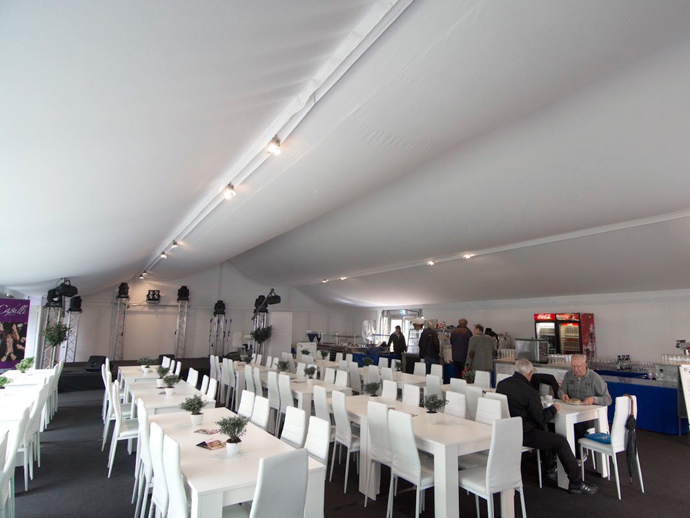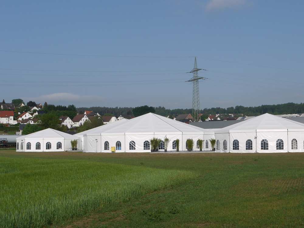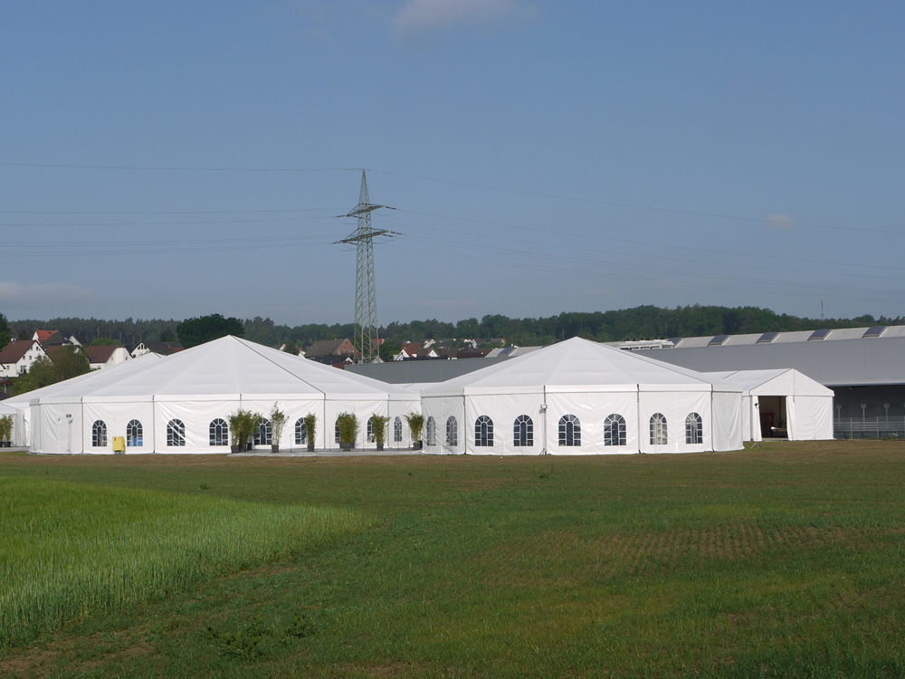 Ein Rundzelt unterscheidet sich in erster Linie rein optisch von einem konventionellen Zeltsystem. Neben dem Vorteil der modernen Optik ist dennoch die eingeschränktere Nutzung des Innenraumes zu beachten. Wir bieten vier verschiedene Rundzelttypen im Bereich zwischen 8 und 30m Durchmesser an.