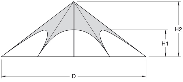 Das Rundzelt 'Rangerflex' besticht durch seine besondere Form und ist ein optimaler Sonnen- und Regenschutz. Mit einem Durchmesser von 13 Metern bietet es einer Vielzahl an Gästen Platz. Es ist kein Bodensystem auswählbar.