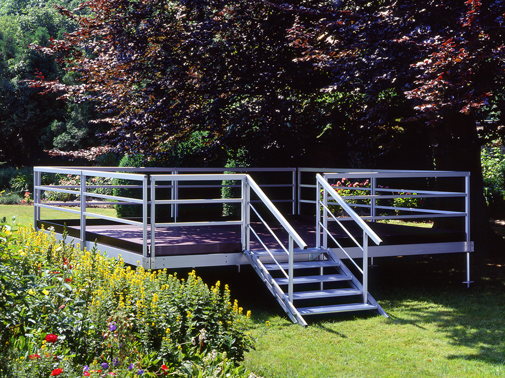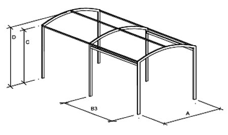 Unsere Walkways können gerade oder als 90° Bogen gebaut und mit Rundbogen (Arcum) oder Satteldach ausgeführt werden.