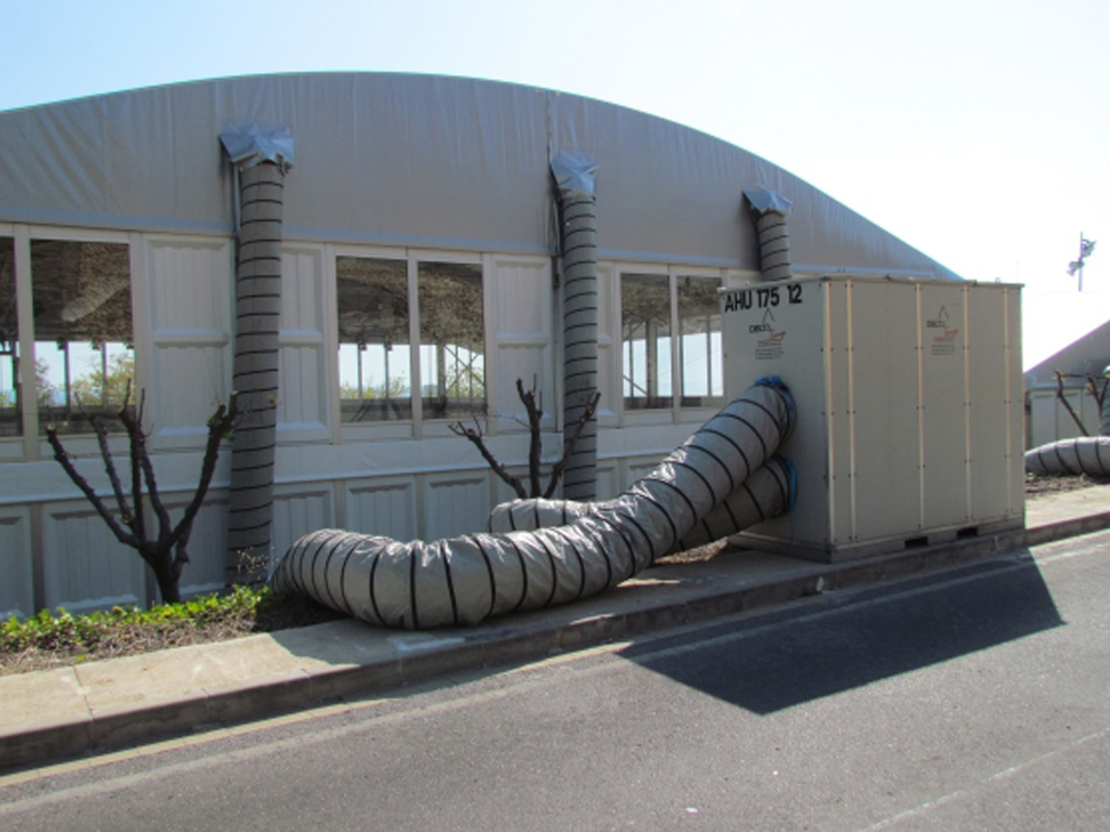 - Einsatz integriertes Beleuchtungssystem bei Großzelten mit den Spannweiten 16m (3 und 4m SH) + 20m (3 und 4m SH) + 24m (3 und 4m SH) + 32m (3m SH)